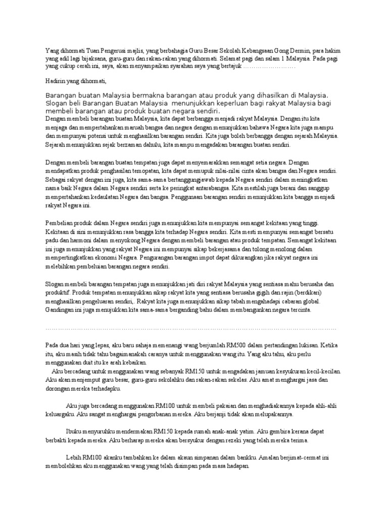 Contoh Karangan Galakkan Menggunakan Barang Buatan Malaysia. Belilah Barangan Buatan Malaysia. Bahasa Melayu Tahun 5 Source.